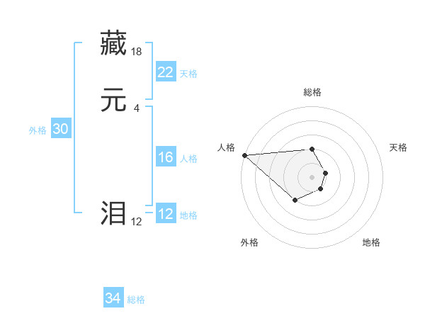 藏元 泪さんを姓名の画数から五運を鑑定