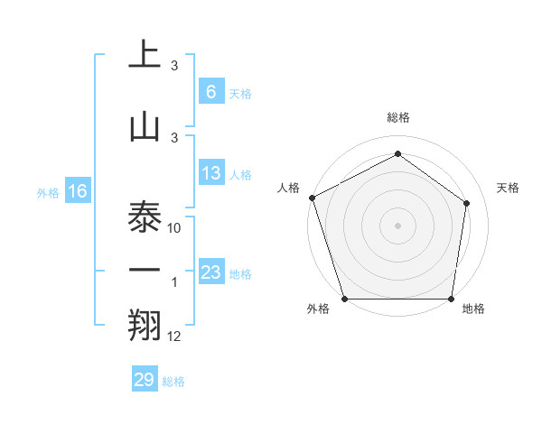 上山 泰一翔さんを姓名の画数から五運を鑑定