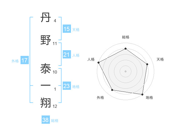 丹野 泰一翔さんの総格は38画の4点!