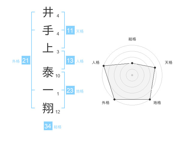 井手上 泰一翔さんを姓名の画数から五運を鑑定