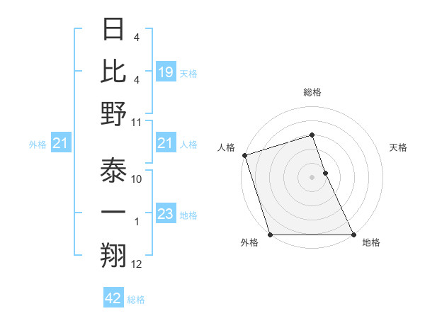 日比野 泰一翔さんの外格は21画の5点!