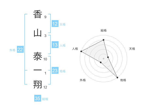 香山 泰一翔さんを姓名の画数から五運を鑑定