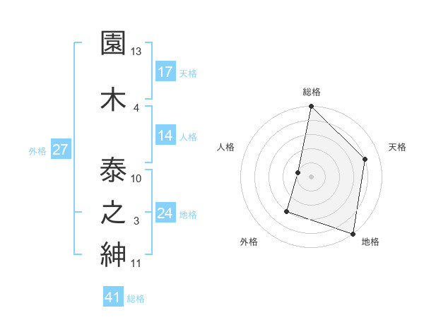 園木 泰之紳さんの総格は41画の5点!