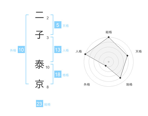 二子 泰京さんの総格は23画の5点!