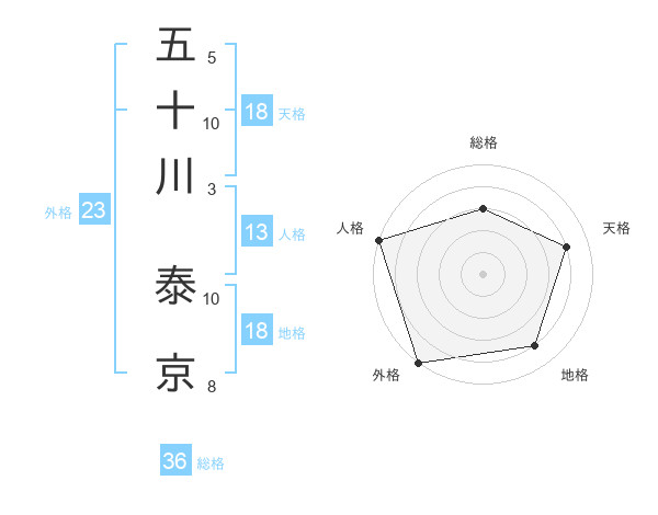 五十川 泰京さんの総格は36画の3点!