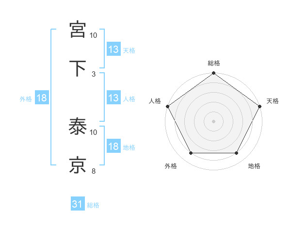 宮下 泰京さんの天格は13画の5点!