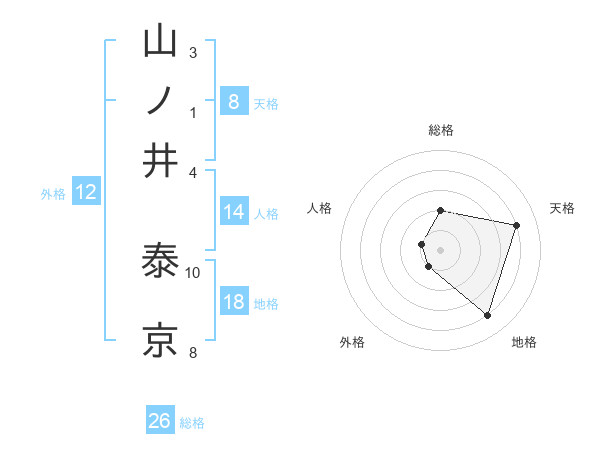 山ノ井 泰京さんを姓名の画数から五運を鑑定