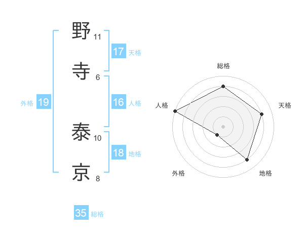 野寺 泰京さんを姓名の画数から五運を鑑定