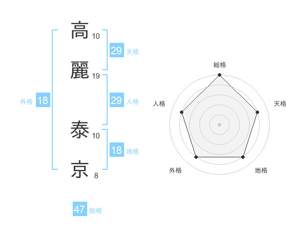 高麗 泰京さんの総格は47画の5点!