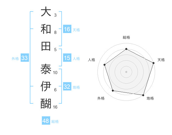 大和田 泰伊醐さんを姓名の画数から五運を鑑定