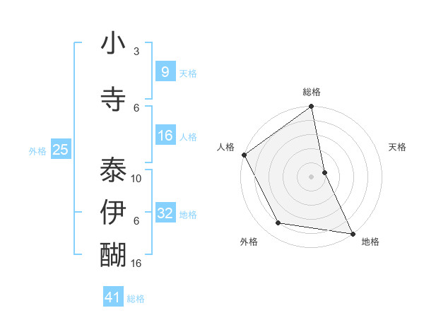 小寺 泰伊醐さんを姓名の画数から五運を鑑定