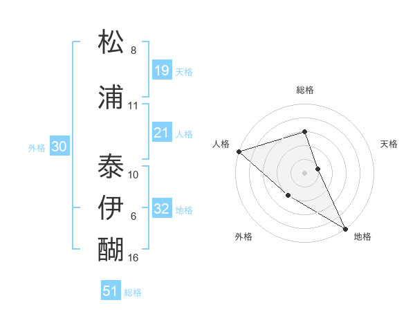 松浦 泰伊醐さんを姓名の画数から五運を鑑定