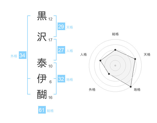 黒沢 泰伊醐さんを姓名の画数から五運を鑑定
