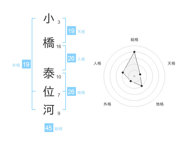 小橋 泰位河さんを姓名の画数から五運を鑑定