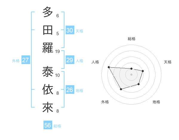 多田羅 泰依來さんを姓名の画数から五運を鑑定