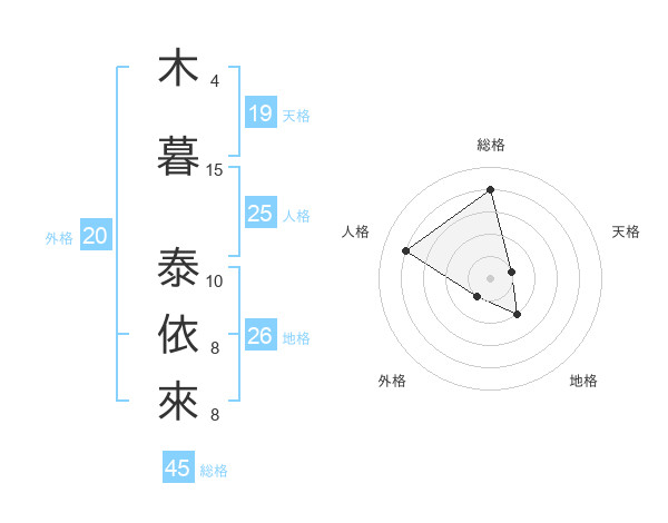 木暮 泰依來さんの総格は45画の4点
