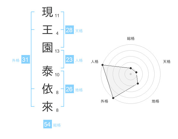 現王園 泰依來さんの外格は31画の5点!