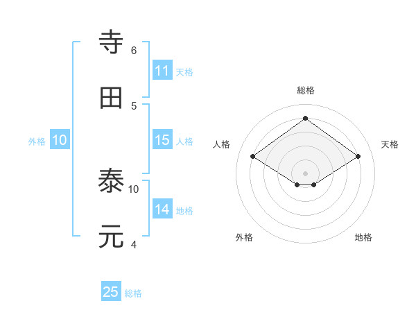 寺田 泰元さんの総格は25画の4点!