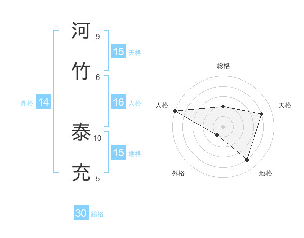 河竹 泰充さんの総格は30画の2点!