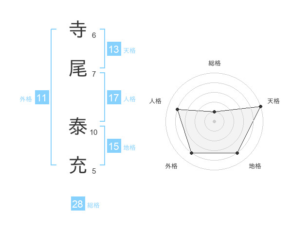 寺尾 泰充さんの総格は28画の1点!