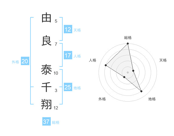 由良 泰千翔さんを姓名の画数から五運を鑑定