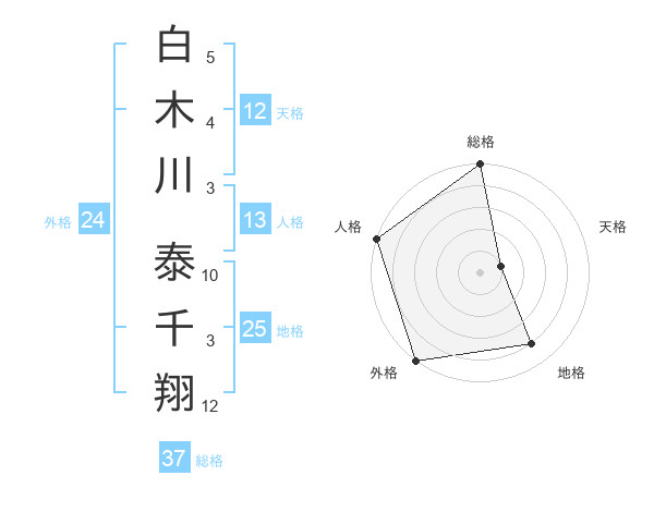 白木川 泰千翔さんの総格は37画の5点!