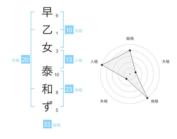 早乙女 泰和ずさんを姓名の画数から五運を鑑定