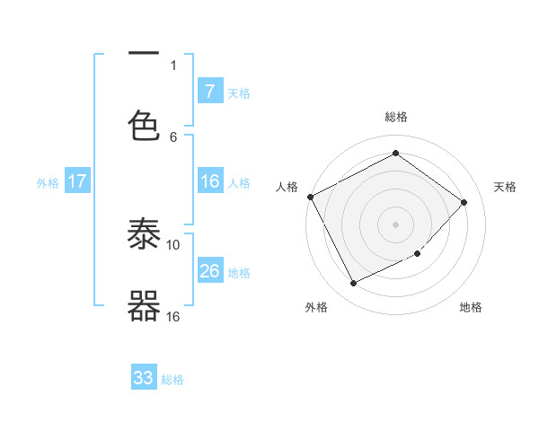 一色 泰器さんの外格は17画の4点!
