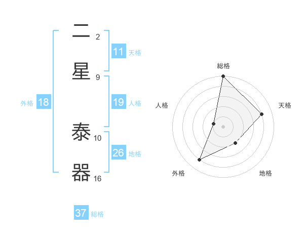 二星 泰器さんの総格は37画の5点!