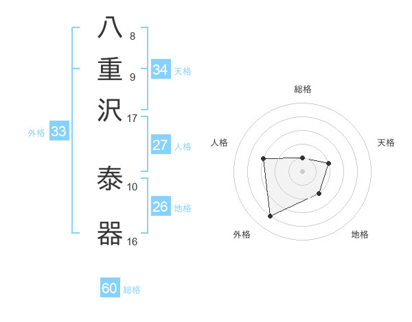八重沢 泰器さんの総格は60画の1点!