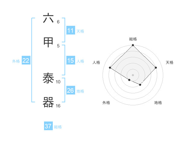 六甲 泰器さんの総格は37画の5点!