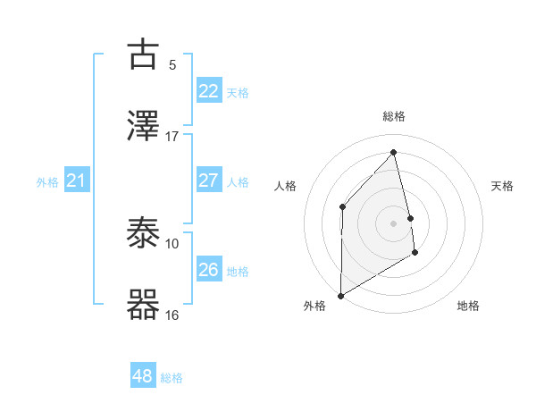 古澤 泰器さんの外格は21画の5点!