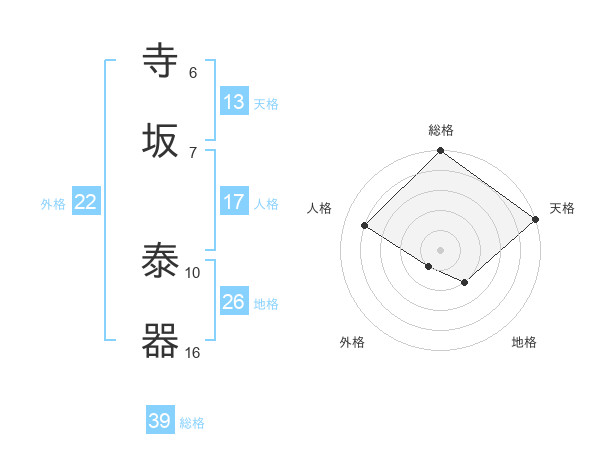 寺坂 泰器さんを姓名の画数から五運を鑑定