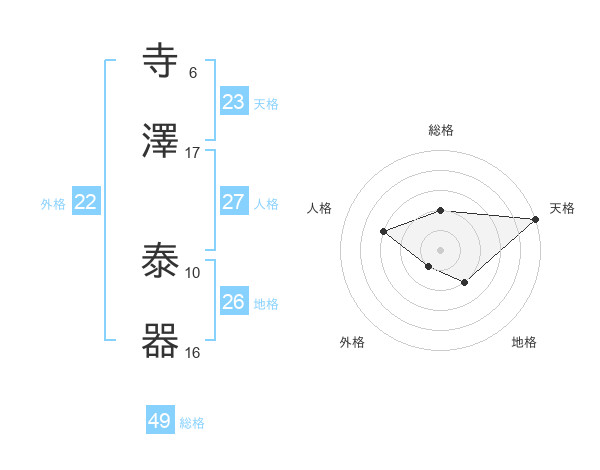 寺澤 泰器さんを姓名の画数から五運を鑑定