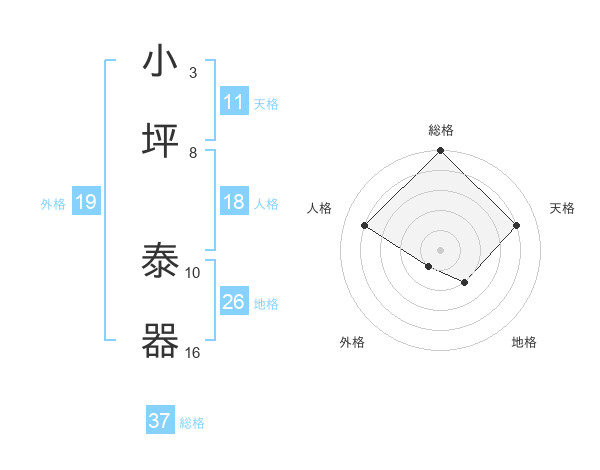 小坪 泰器さんを姓名の画数から五運を鑑定
