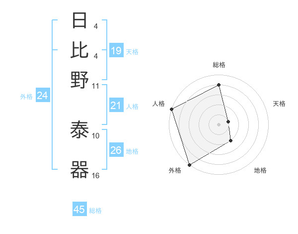 日比野 泰器さんを姓名の画数から五運を鑑定