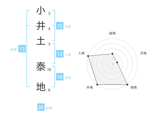 小井土 泰地さんの総格は26画の2点!