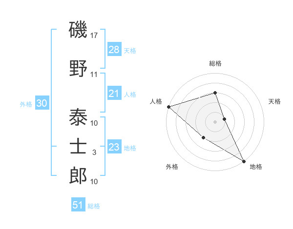 磯野 泰士郎さんを姓名の画数から五運を鑑定