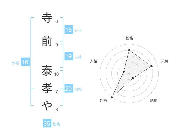 寺前 泰孝やさんを姓名の画数から五運を鑑定