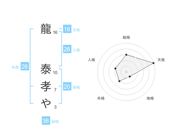 龍 泰孝やさんを姓名の画数から五運を鑑定