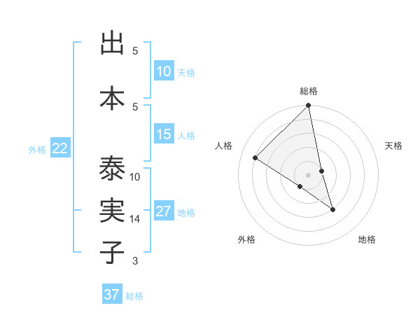 出本 泰実子さんを姓名の画数から五運を鑑定