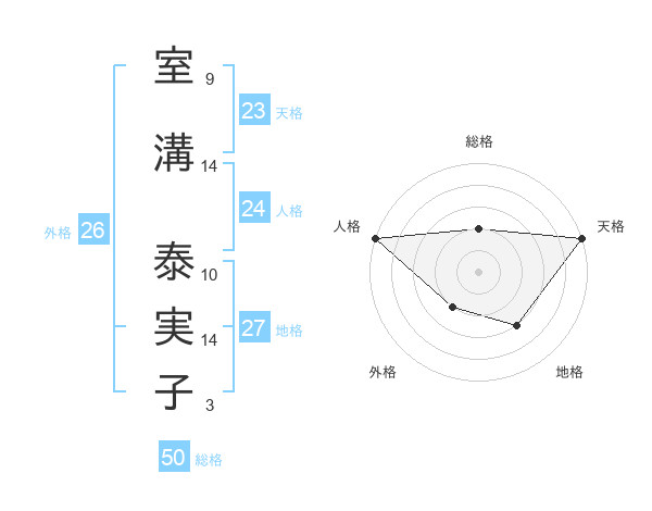 室溝 泰実子さんを姓名の画数から五運を鑑定
