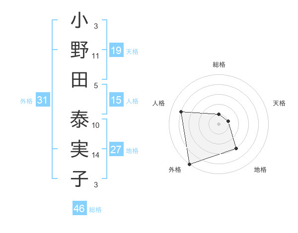 小野田 泰実子さんを姓名の画数から五運を鑑定