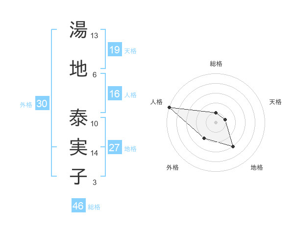 湯地 泰実子さんの総格は46画の1点!