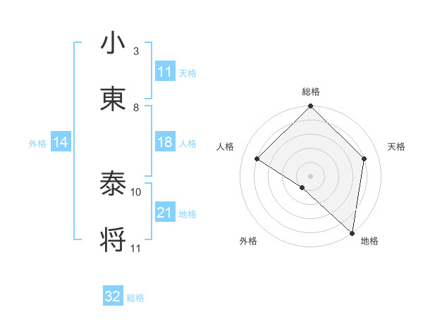 小東 泰将さんの総格は32画の5点!