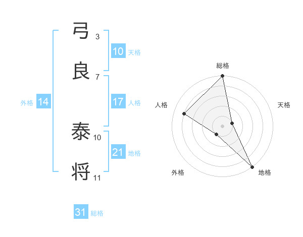弓良 泰将さんを姓名の画数から五運を鑑定