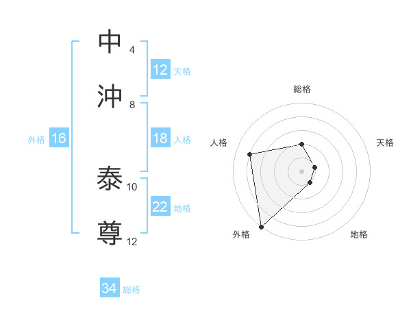 中沖 泰尊さんの総格は34画の2点!