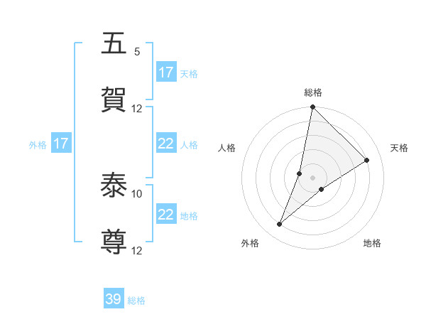 五賀 泰尊さんを姓名の画数から五運を鑑定