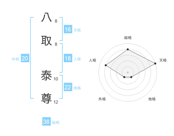 八取 泰尊さんの総格は38画の4点!
