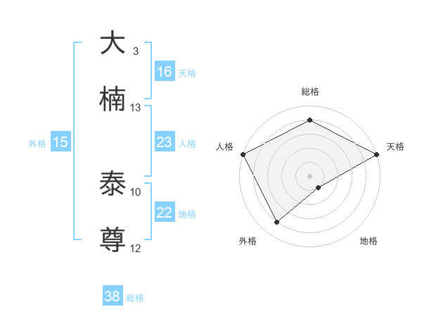 大楠 泰尊さんの総格は38画の4点!